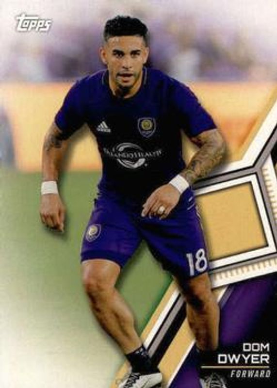 The Dom Dwyer 2018 Topps MLS #134 Base card is 1 of 49 Dom Dwyer's card variations in the 2018 Topps MLS set being tracked by Sports Card Investor, including 10x14 /99, Blue /99, 5x7 /49, Orange /25, and 5x7 Gold /10.