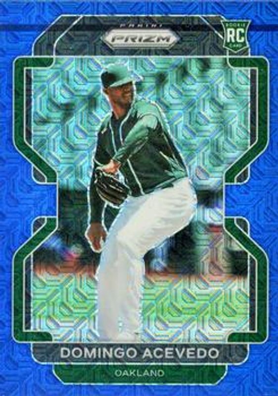 The Domingo Acevedo 2022 Prizm #174 Blue Mojo /199 Rookie card is 1 of 64 Domingo Acevedo's card variations in the 2022 Prizm set being tracked by Sports Card Investor, including Base, Blue, Blue Velocity, Carolina Blue, and Cosmic Haze.