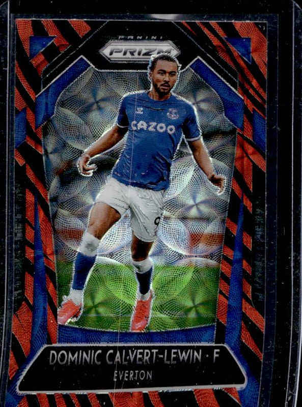 The Dominic Calvert-Lewin 2020 Prizm Premier League #119 Choice Tiger Stripe card is 1 of 55 Dominic Calvert-Lewin's card variations in the 2020 Prizm Premier League set being tracked by Sports Card Investor, including Base, Green Mojo, Pink Pulsar, White Sparkle, and Blue Pulsar.