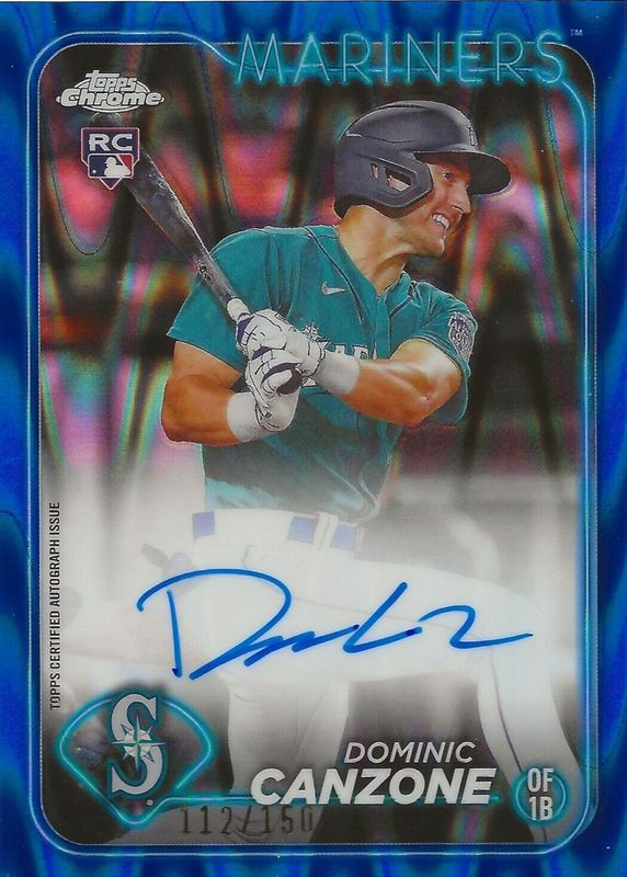 The Dominic Canzone 2024 Topps Chrome #133 Blue RayWave Refractor /150 Rookie card in Raw condition has not changed in price in the last 30 days and was last sold for $10.00 .