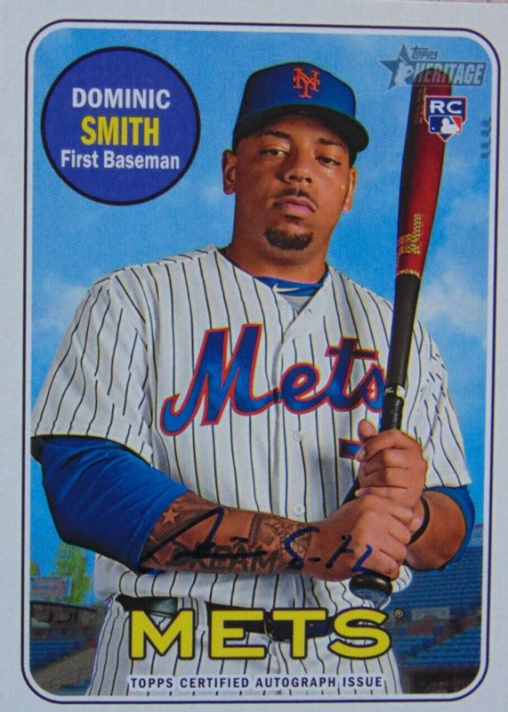 Dominic Smith's Baseball cards are available in at least 35 sets. Dominic Smith's biggest 7-day price movers are 2013 Bowman Draft #BCA-DS Chrome DP Auto, 2018 Topps Heritage #ROA-DS Real One Autographs, and 2026 Topps Heritage #225 Chrome - Aqua Sparkle Refractor.