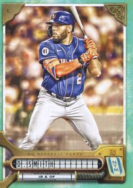 The Dominic Smith 2022 Topps Gypsy Queen #255 Turquoise /199 card is 1 of 14 Dominic Smith's card variations in the 2022 Topps Gypsy Queen set being tracked by Sports Card Investor, including Base, Green, Missing Black Plate, Missing Nameplate, and Team Logo Swap.