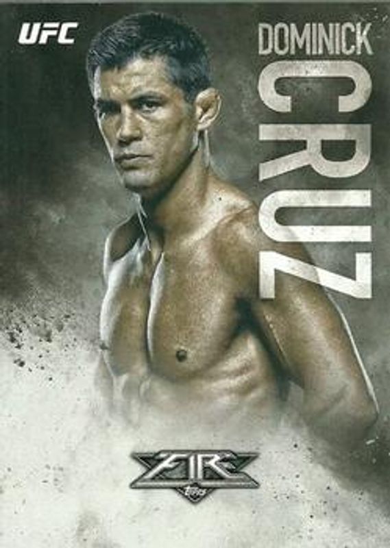 The Dominick Cruz 2017 Topps Fire UFC #26 Base card is 1 of 8 Dominick Cruz's card variations in the 2017 Topps Fire UFC set being tracked by Sports Card Investor, including Red Hot /142, Blue Flame /25, Inferno /1, Fired Up, and Autographs /149.