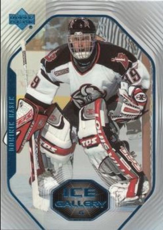 The Dominik Hasek 1999 Upper Deck #IG-4 Ice Gallery card is 1 of 34 Dominik Hasek's card variations in the 1999 Upper Deck set being tracked by Sports Card Investor, including #145 Base, #22 Base, #145 UD Exclusives /100, #22 UD Exclusives /100, and #145 UD Exclusives 1/1 /1.