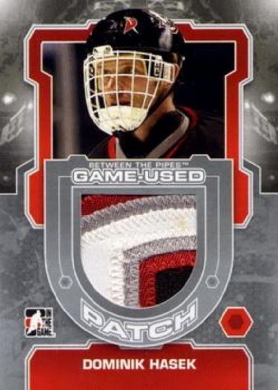 The Dominik Hasek 2012 In The Game Between The Pipes #M-30 Jerseys Patch Silver card is 1 of 31 Dominik Hasek's card variations in the 2012 In The Game Between The Pipes set being tracked by Sports Card Investor, including #A-DHA Authentic Goaliegraphs, #FG-02 Full Gear Silver, #GA-DH Glove Autographs, #DH5 He Shoots He Saves Redemption, and #DH6 He Shoots He Saves Redemption.
