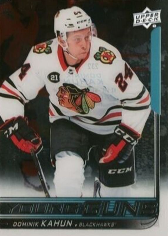 This card is 1 of 7 Dominik Kahun's card variations in the 2018 Upper Deck set being tracked by Sports Card Investor, including Young Guns Base, Young Guns - Jumbo, Young Guns - Silver Foil, Young Guns - Speckled Rainbow Foil, and Young Guns - UD Exclusives /100.