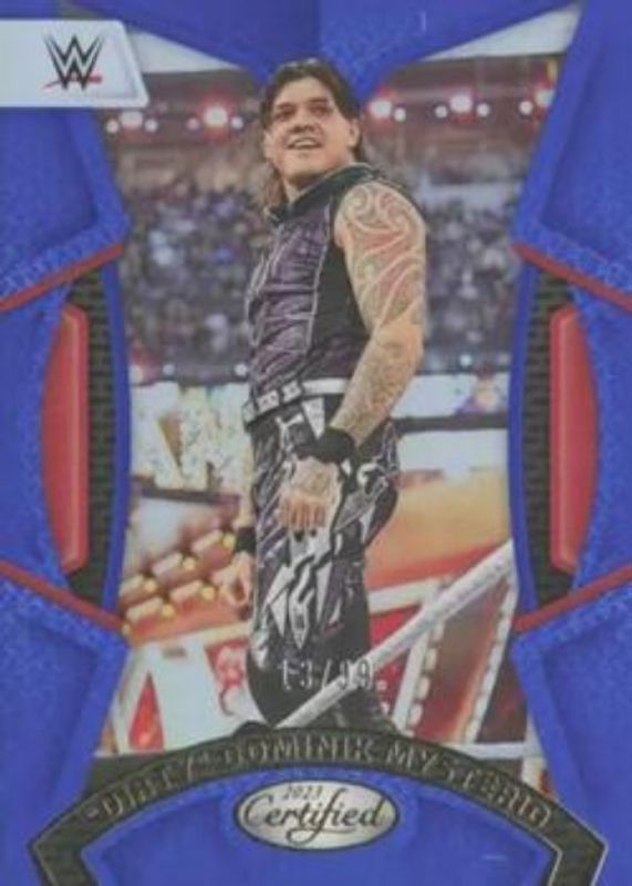 The Dominik Mysterio 2023 Chronicles WWE #215 Blue /99 card is 1 of 58 Dominik Mysterio's card variations in the 2023 Chronicles WWE set being tracked by Sports Card Investor, including #215 Base, #7 Base, #167 Base, #340 Base, and #277 Base.