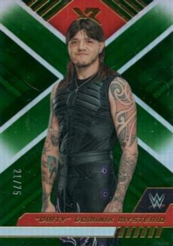 The Dominik Mysterio 2023 Chronicles WWE #277 Green /75 card is 1 of 58 Dominik Mysterio's card variations in the 2023 Chronicles WWE set being tracked by Sports Card Investor, including #215 Base, #7 Base, #167 Base, #340 Base, and #277 Base.