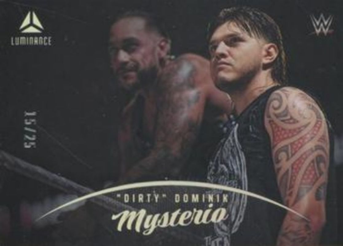 The Dominik Mysterio 2023 Chronicles WWE #167 Holo Silver /25 card is 1 of 58 Dominik Mysterio's card variations in the 2023 Chronicles WWE set being tracked by Sports Card Investor, including #215 Base, #7 Base, #167 Base, #340 Base, and #277 Base.