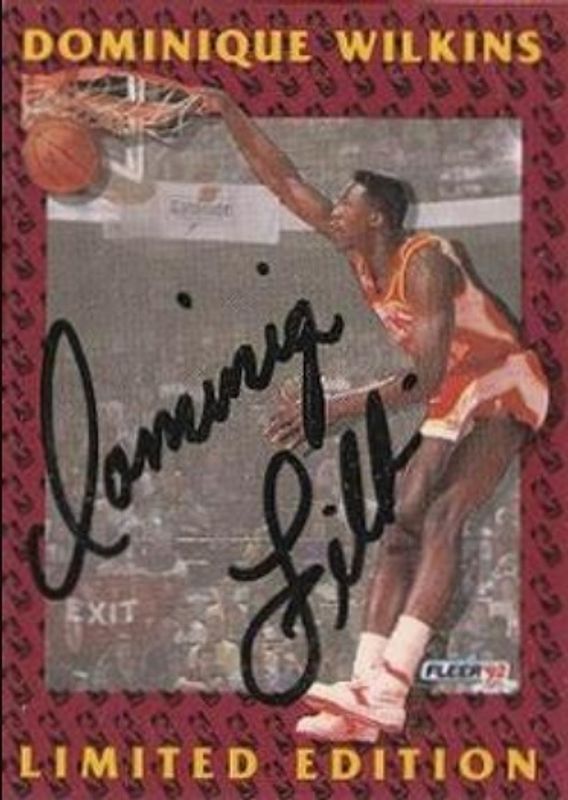 The Dominique Wilkins 1991 Fleer #1 Dominique Wilkins Limited Edition Autographs card is 1 of 31 Dominique Wilkins' card variations in the 1991 Fleer set being tracked by Sports Card Investor, including Base, #212 Base, #372 Base, #6 Base, and #6 3D Acrylic.