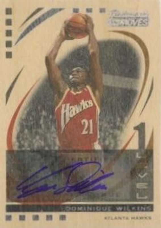 The Dominique Wilkins 2006 Topps Trademark Moves #81 Autographs Wood /10 card is 1 of 20 Dominique Wilkins' card variations in the 2006 Topps Trademark Moves set being tracked by Sports Card Investor, including Base /149, Foil /75, Rainbow /35, Wood /19, and Wood Red /10.