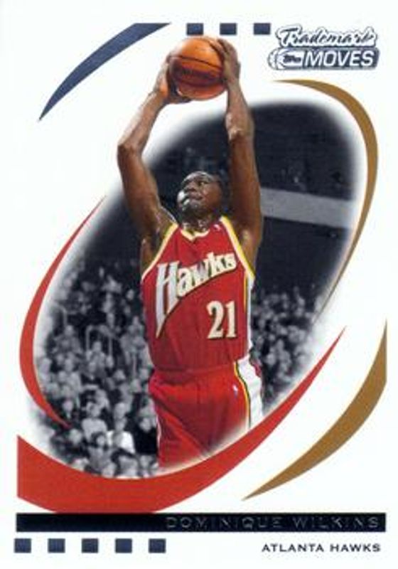 The Dominique Wilkins 2006 Topps Trademark Moves #81 Base /149 card is 1 of 20 Dominique Wilkins' card variations in the 2006 Topps Trademark Moves set being tracked by Sports Card Investor, including Foil /75, Rainbow /35, Wood /19, Wood Red /10, and Trademark Dunk.