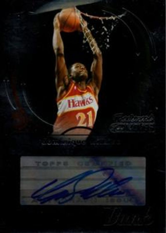 The Dominique Wilkins 2006 Topps Trademark Moves #SDU-20 Signatures Dunk Autographs Foil /35 card is 1 of 20 Dominique Wilkins' card variations in the 2006 Topps Trademark Moves set being tracked by Sports Card Investor, including Base /149, Foil /75, Rainbow /35, Wood /19, and Wood Red /10.