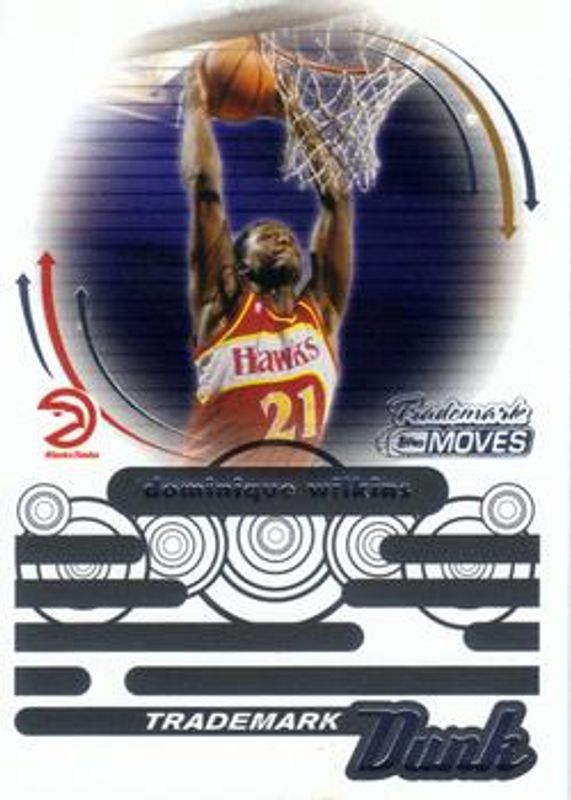 The Dominique Wilkins 2006 Topps Trademark Moves #TDU-20 Trademark Dunk card is 1 of 20 Dominique Wilkins' card variations in the 2006 Topps Trademark Moves set being tracked by Sports Card Investor, including Base /149, Foil /75, Rainbow /35, Wood /19, and Wood Red /10.