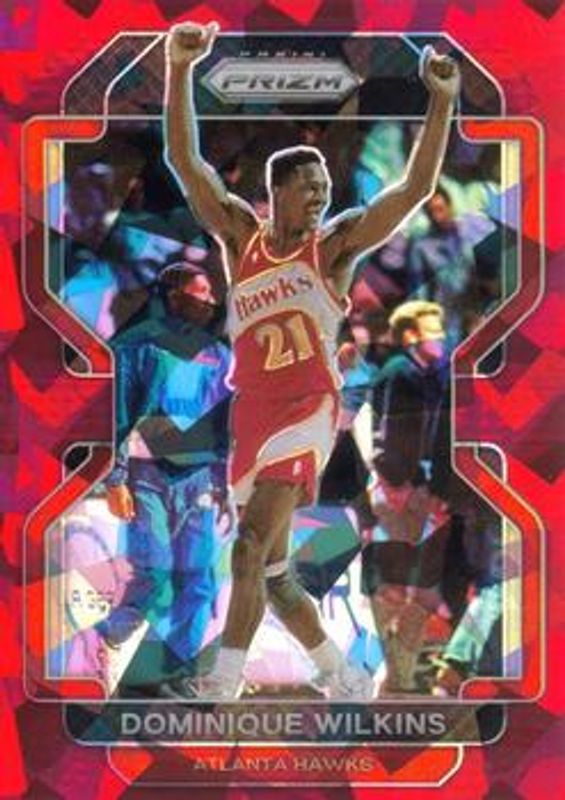 The Dominique Wilkins 2021 Prizm #252 Red Ice card is 1 of 60 Dominique Wilkins' card variations in the 2021 Prizm set being tracked by Sports Card Investor, including Base, Blue NBA 75th Anniversary, Blue Wave, Choice Blue Yellow Green, and Factory Set Blue Hyper.
