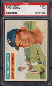 The Don Larsen 1956 Topps #332 Base card in PSA 8 condition has moved down -$52.00 (-11.3%) in the last 30 days and was last sold for $409.00 .