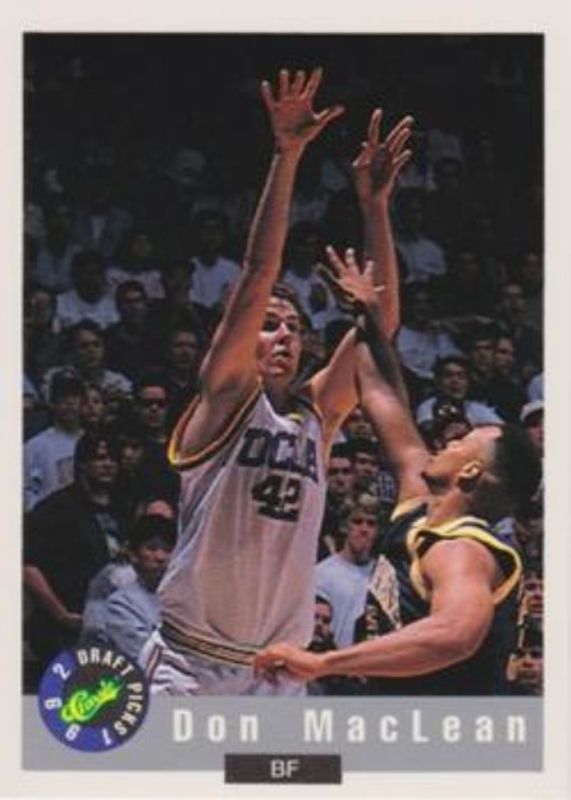 The Don MacLean 1992 Classic Draft Picks #5 Promos Rookie card is 1 of 4 Don MacLean's card variations in the 1992 Classic Draft Picks set being tracked by Sports Card Investor, including Base, Gold /8500, and Promos - Gold.