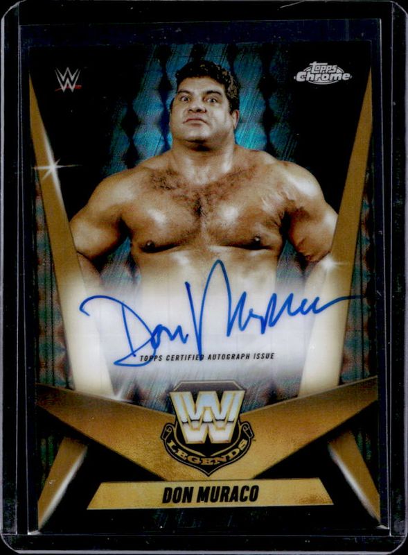The Don Muraco 2025 Topps Chrome WWE #LCA-DM Legendary Chrome Autographs - Gold Geometric Refractor /50 card is 1 of 14 Don Muraco's card variations in the 2025 Topps Chrome WWE set being tracked by Sports Card Investor, including Legendary Chrome Autographs, Legendary Chrome Autographs - Geometric Refractor, Legendary Chrome Autographs - Refractor /175, Legendary Chrome Autographs - Blue Refractor /150, and Legendary Chrome Autographs - Gold Refractor /50.