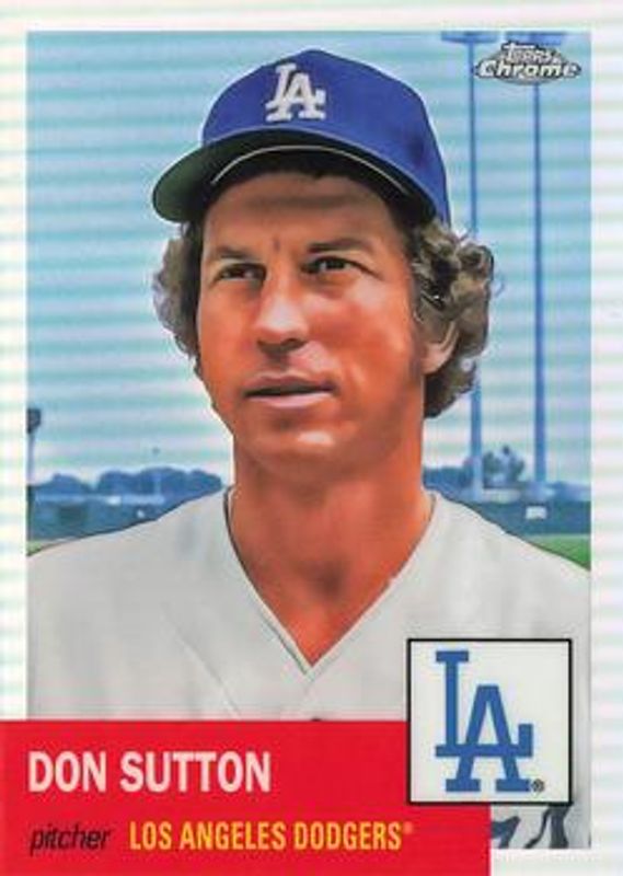 The Don Sutton 2022 Topps Chrome Platinum Anniversary #408 Refractor card is 1 of 34 Don Sutton's card variations in the 2022 Topps Chrome Platinum Anniversary set being tracked by Sports Card Investor, including Base, Black & White Mini Diamond Refractor, Blue Prism Refractor, Gold Prism Refractor, and Prism Refractor.