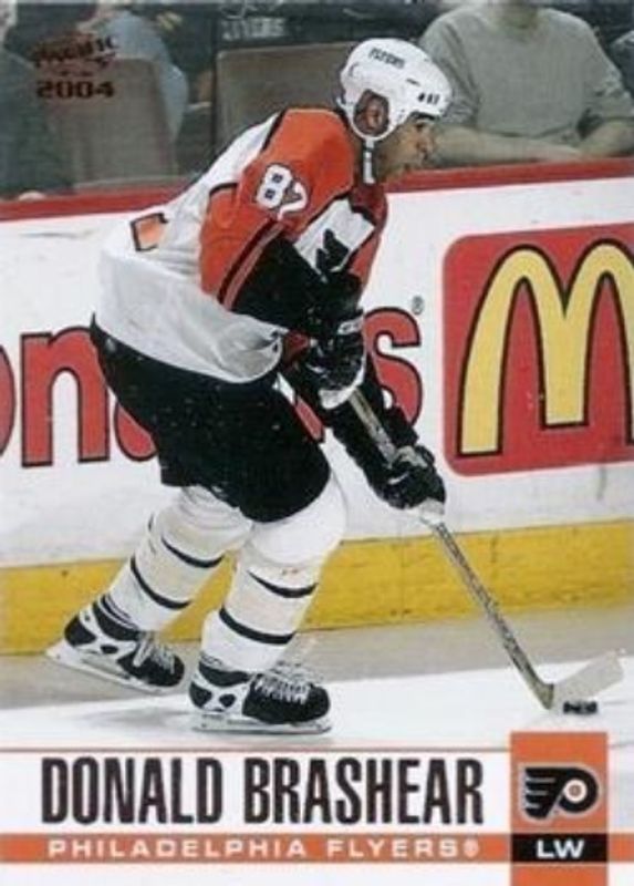 The Donald Brashear 2003 Pacific #247 Red card is 1 of 5 Donald Brashear's card variations in the 2003 Pacific set being tracked by Sports Card Investor, including Base /999, Blue /250, L'Internationale des Collectionneurs Montreal /1, and National Convention /1.