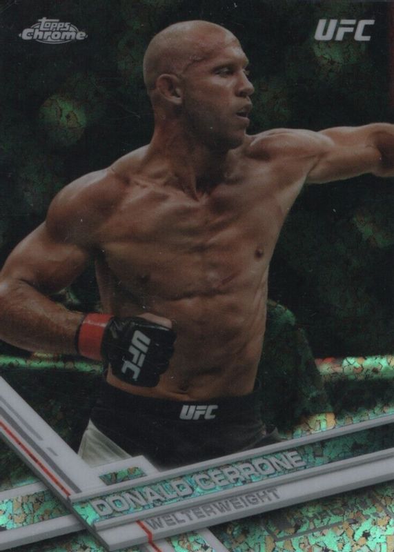 This card is 1 of 9 Donald Cerrone's card variations in the 2017 Topps Chrome UFC set being tracked by Sports Card Investor, including Refractor, X-Fractor, Green Refractor /99, Blue Wave Refractor /75, and Gold Refractor /50.