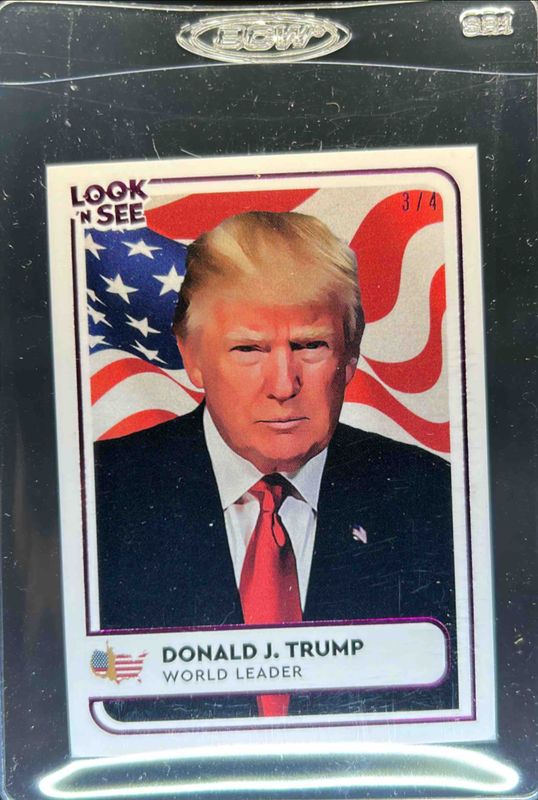 The Donald J Trump 2024 Decision #4 Look n' See - Pink /4 card is 1 of 79 Donald J Trump's card variations in the 2024 Decision set being tracked by Sports Card Investor, including #1 Base, #1b Base, #1 Election Day 2024 Silver Stamped /25, #1 Election Day 2024 Gold Stamped /10, and #1 Election Day 2024 Bronze Stamped /5.