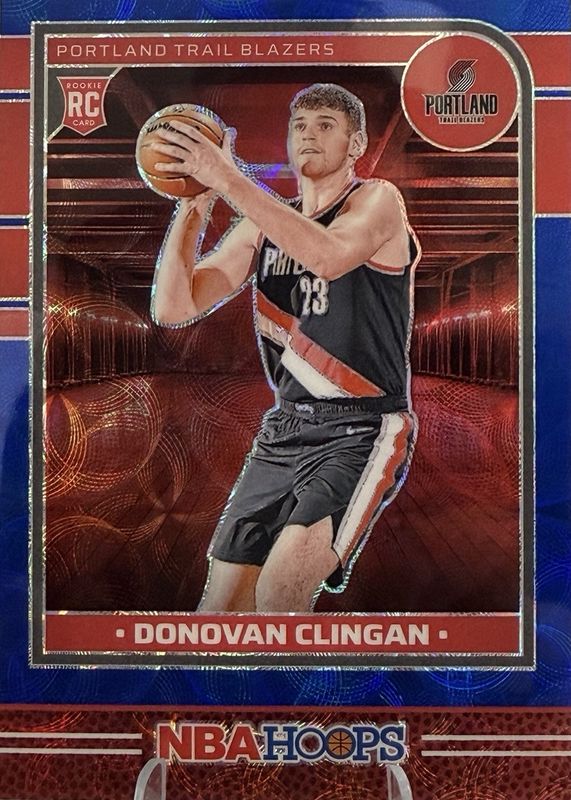 This card is 1 of 118 Donovan Clingan's card variations in the 2024 Hoops set being tracked by Sports Card Investor, including Base, Tribute, Blue, Impulse, and Premium.