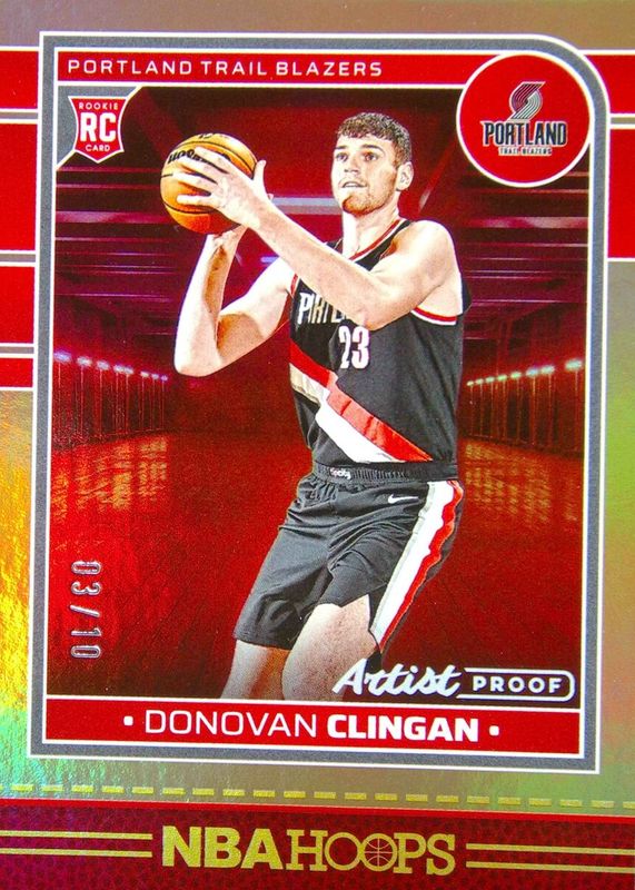 The Donovan Clingan 2024 Hoops #237 Gold Artist Proof /10 Rookie card in Raw condition has not changed in price in the last 30 days and was last sold for $35.00 .