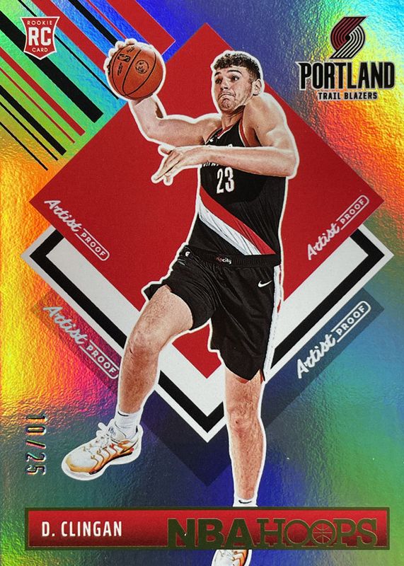 The Donovan Clingan 2024 Hoops #293 Tribute - Artist Proof /25 Rookie card in Raw condition has not changed in price in the last 30 days and was last sold for $18.00 .