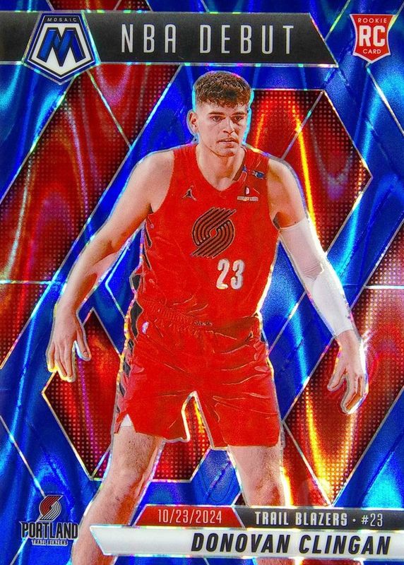 The Donovan Clingan 2024 Mosaic #261 NBA Debut - Blue Seismic /149 Rookie card in Raw condition has not changed in price in the last 30 days and was last sold for $4.25 .