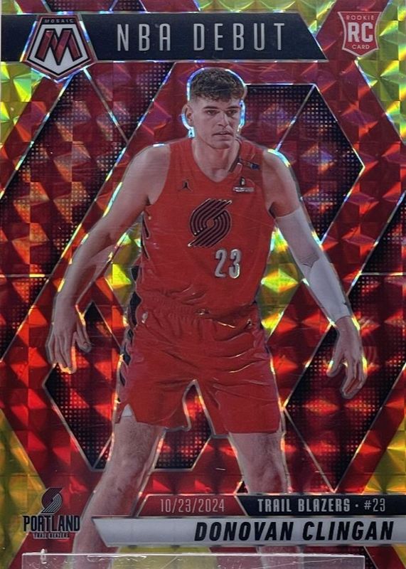 The Donovan Clingan 2024 Mosaic #261 NBA Debut - Choice Fusion Red & Yellow /75 Rookie card in Raw condition has not changed in price in the last 30 days and was last sold for $1.80 .