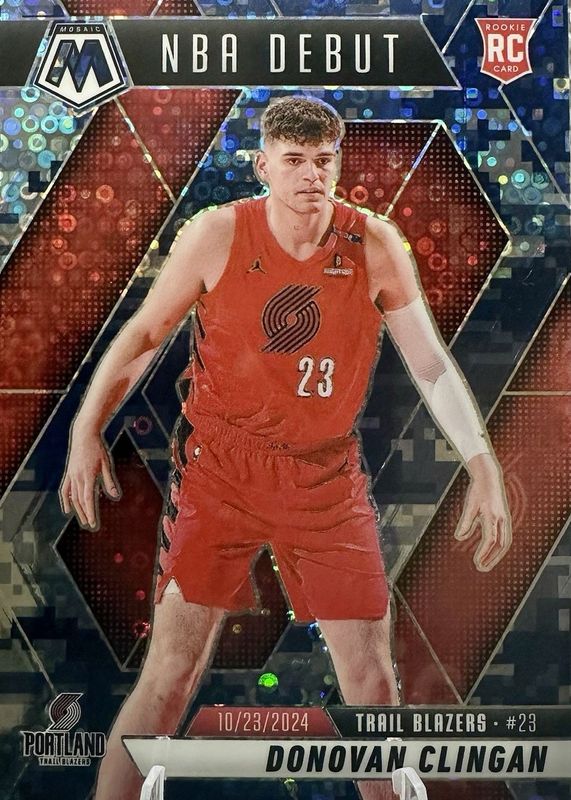 The Donovan Clingan 2024 Mosaic #261 NBA Debut - Fast Break Blue Camo /35 Rookie card in Raw condition has not changed in price in the last 30 days and was last sold for $18.50 .