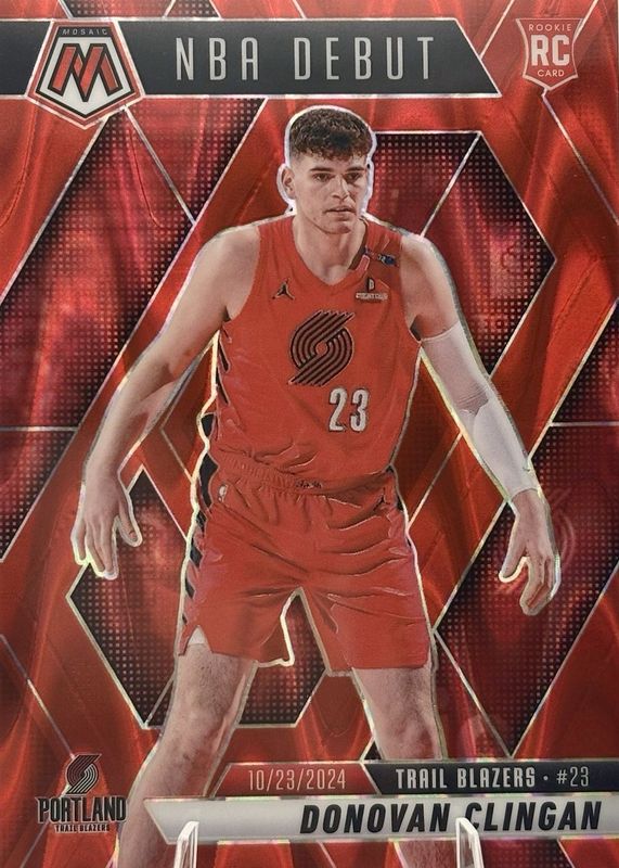 2024 25 Mosaic Red Seismic Donovan Clingan NBA Debut /299 RC Trailblazers #261