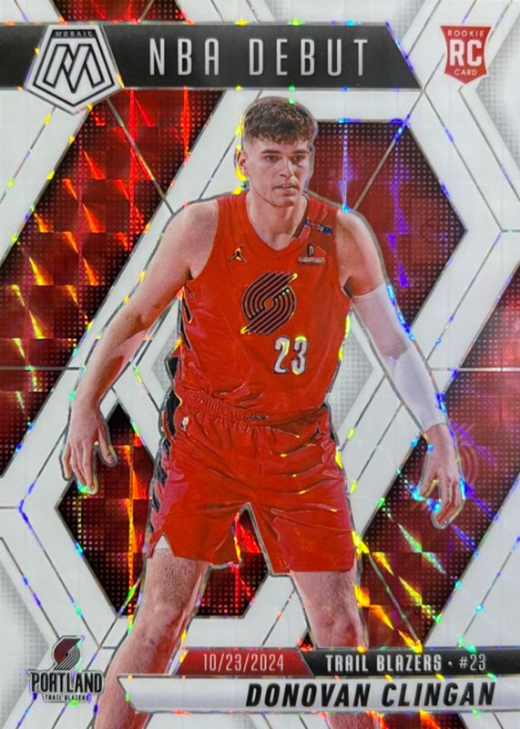 The Donovan Clingan 2024 Mosaic #261 NBA Debut - White /25 Rookie card in Raw condition has not changed in price in the last 30 days and was last sold for $13.30 .