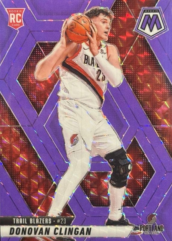 DONOVAN CLINGAN 2024-25 Panini Mosaic #246 Purple Fluorescent Prizm RC #218/249