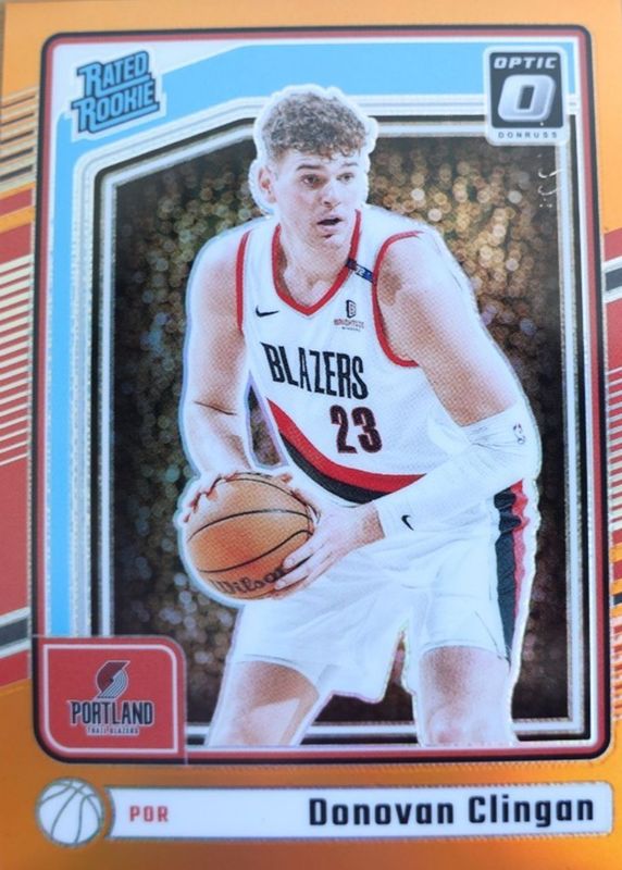 2024-25 Donruss Optic 272 Donovan Clingan Rated Rookie Orange Holo Prizm 122/175