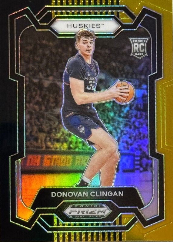 The Donovan Clingan 2024 Prizm Draft Picks #95 Black Gold /5 Rookie card in Raw condition has not changed in price in the last 30 days and was last sold for $70.99 .