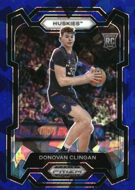 The Donovan Clingan 2024 Prizm Draft Picks #95 Blue Ice /99 Rookie card in Raw condition has moved down -$0.89 (-22.9%) in the last 30 days and was last sold for $2.99 .