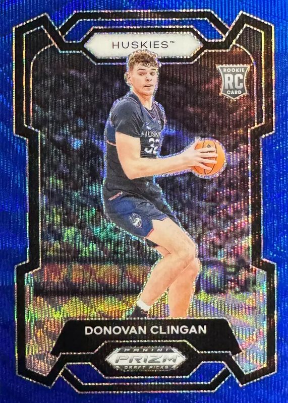 The Donovan Clingan 2024 Prizm Draft Picks #95 Blue Wave /249 Rookie card in Raw condition has not changed in price in the last 30 days and was last sold for $2.00 .