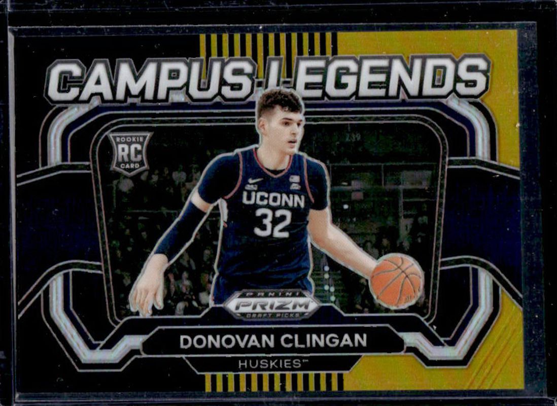 The Donovan Clingan 2024 Prizm Draft Picks #9 Campus Legends - Black Gold /5 Rookie card is 1 of 234 Donovan Clingan's card variations in the 2024 Prizm Draft Picks set being tracked by Sports Card Investor, including #95b Base, #95 Base, #95 Variation, #95b Green, and #95 Green.