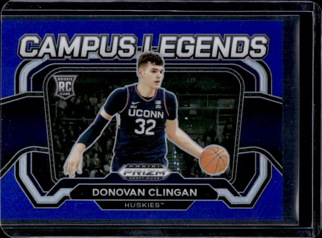 The Donovan Clingan 2024 Prizm Draft Picks #9 Campus Legends - Blue /199 Rookie card is 1 of 234 Donovan Clingan's card variations in the 2024 Prizm Draft Picks set being tracked by Sports Card Investor, including #95b Base, #95 Base, #95 Variation, #95b Green, and #95 Green.