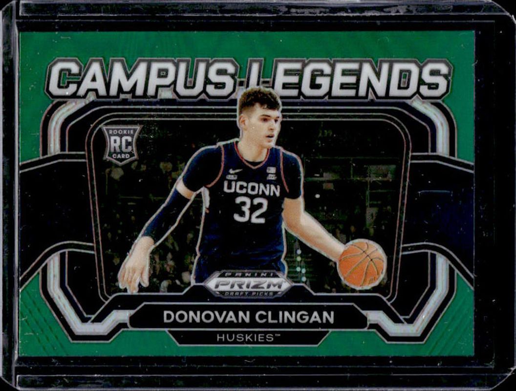 The Donovan Clingan 2024 Prizm Draft Picks #9 Campus Legends - Green Rookie card is 1 of 234 Donovan Clingan's card variations in the 2024 Prizm Draft Picks set being tracked by Sports Card Investor, including #95b Base, #95 Base, #95 Variation, #95b Green, and #95 Green.