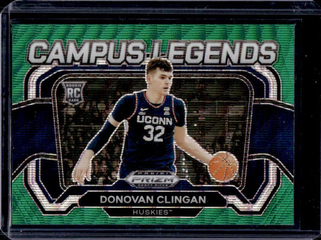 The Donovan Clingan 2024 Prizm Draft Picks #9 Campus Legends - Green Wave Rookie card is 1 of 234 Donovan Clingan's card variations in the 2024 Prizm Draft Picks set being tracked by Sports Card Investor, including #95b Base, #95 Base, #95 Variation, #95b Green, and #95 Green.