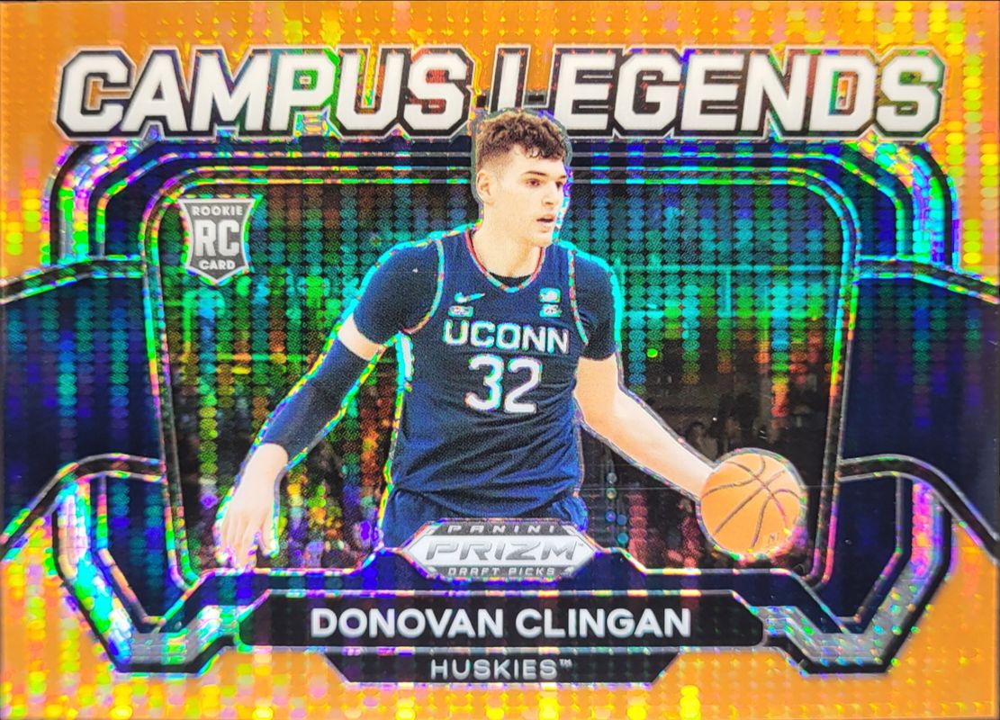 The Donovan Clingan 2024 Prizm Draft Picks #9 Campus Legends - Orange Pulsar /49 Rookie card is 1 of 234 Donovan Clingan's card variations in the 2024 Prizm Draft Picks set being tracked by Sports Card Investor, including #95b Base, #95 Base, #95 Variation, #95b Green, and #95 Green.
