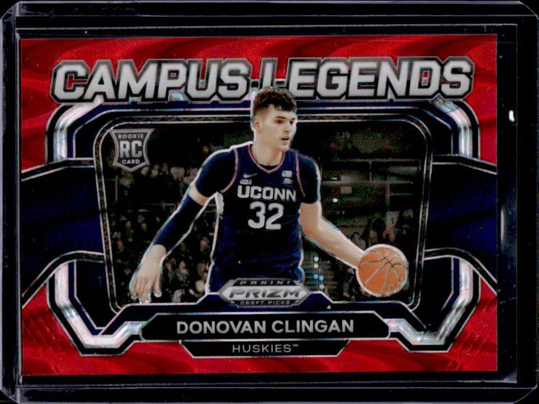 The Donovan Clingan 2024 Prizm Draft Picks #9 Campus Legends - Red Seismic /225 Rookie card is 1 of 234 Donovan Clingan's card variations in the 2024 Prizm Draft Picks set being tracked by Sports Card Investor, including #95b Base, #95 Base, #95 Variation, #95b Green, and #95 Green.