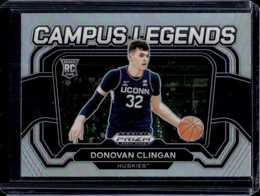 The Donovan Clingan 2024 Prizm Draft Picks #9 Campus Legends - Silver Rookie card is 1 of 234 Donovan Clingan's card variations in the 2024 Prizm Draft Picks set being tracked by Sports Card Investor, including #95b Base, #95 Base, #95 Variation, #95b Green, and #95 Green.
