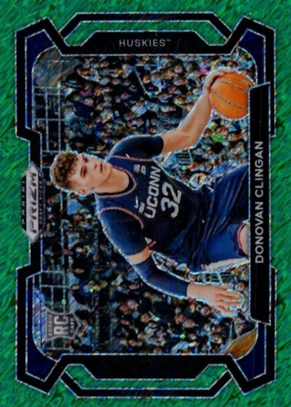 This card is 1 of 234 Donovan Clingan's card variations in the 2024 Prizm Draft Picks set being tracked by Sports Card Investor, including #95b Base, #95 Base, #95 Variation, #95b Green, and #95 Green.