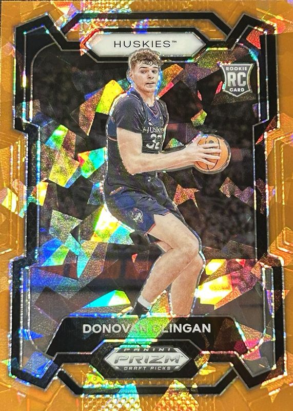 The Donovan Clingan 2024 Prizm Draft Picks #95 Orange Ice Rookie card in Raw condition has not changed in price in the last 30 days and was last sold for $2.25 .