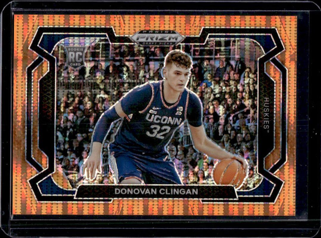 The Donovan Clingan 2024 Prizm Draft Picks #95b Orange Pulsar /49 Rookie card is 1 of 234 Donovan Clingan's card variations in the 2024 Prizm Draft Picks set being tracked by Sports Card Investor, including #95b Base, #95 Base, #95 Variation, #95b Green, and #95 Green.