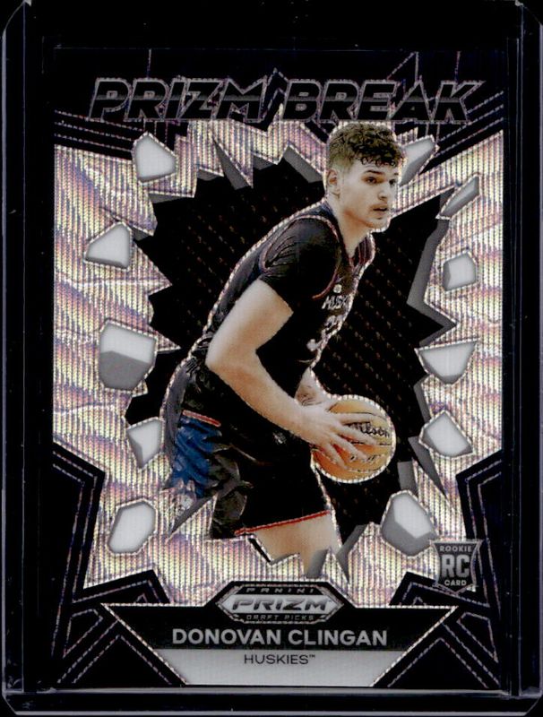 The Donovan Clingan 2024 Prizm Draft Picks #8 Prizm Break - Wave /99 Rookie card is 1 of 234 Donovan Clingan's card variations in the 2024 Prizm Draft Picks set being tracked by Sports Card Investor, including #95b Base, #95 Base, #95 Variation, #95b Green, and #95 Green.